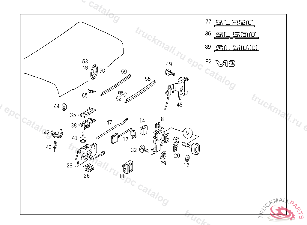 LEVER REMOTE-CONTROL TRUNK LID OPENING, F 155735 EXCEPT CODE 807 ALSO INSTALLED IN VEHICLE TO F 155734 WITH CODE 808