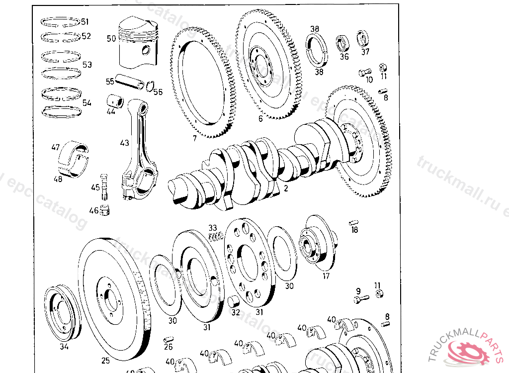 KURBELWELLE MIT. CRANKSHAFT WITH FLYWHEEL AND COLLAR SCREW WITHOUT FLYWHEEL DISC AND VANDERVELL BEARING HALVES