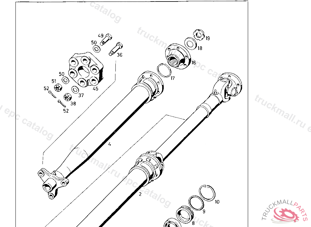 GETEILTE GELENKWELLE, VOLLSTANDIG FUR FAHRZEUGE MIT ZWANGSYNCHRONISIERT. VIERGANG-GETRIEBE