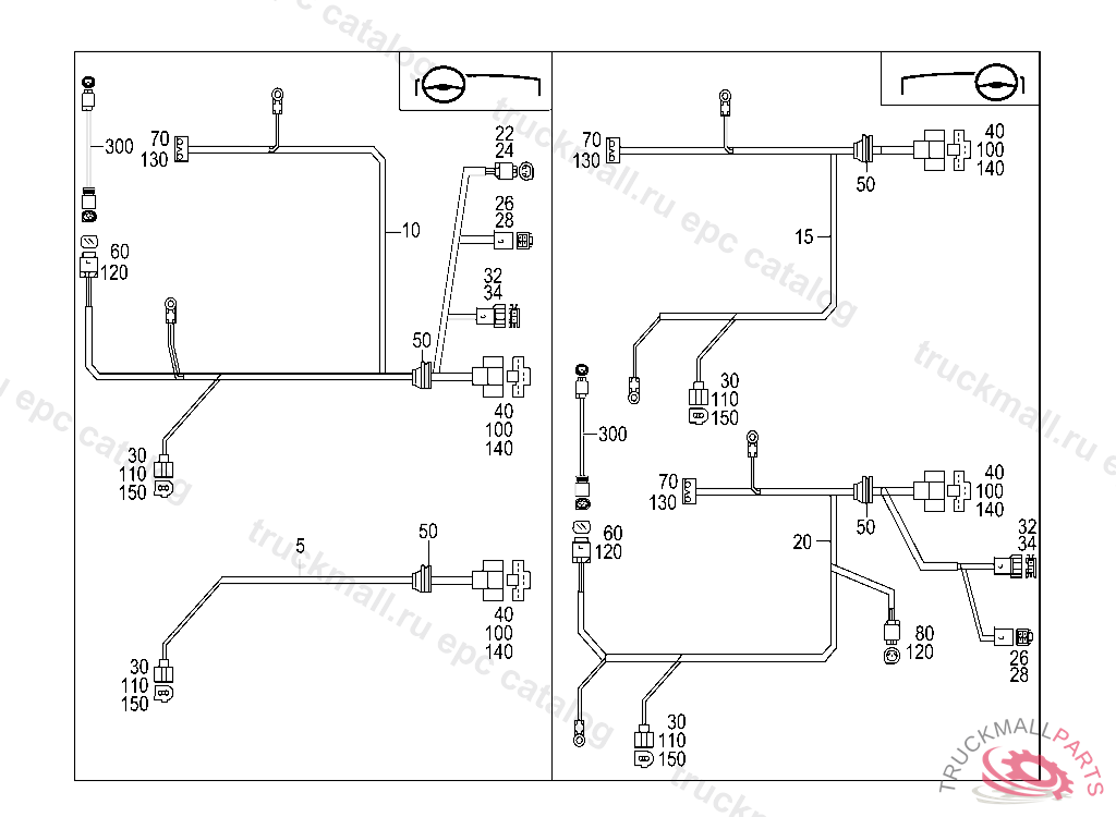 WIRING HARNESS AIR CONDITIONER AND HEADLAMP WIPER/ WASHER, E 01151320020628803 A 40746320020628803 F 32637520020930803 TO BE ADAPTED DURING ASSEMBLY