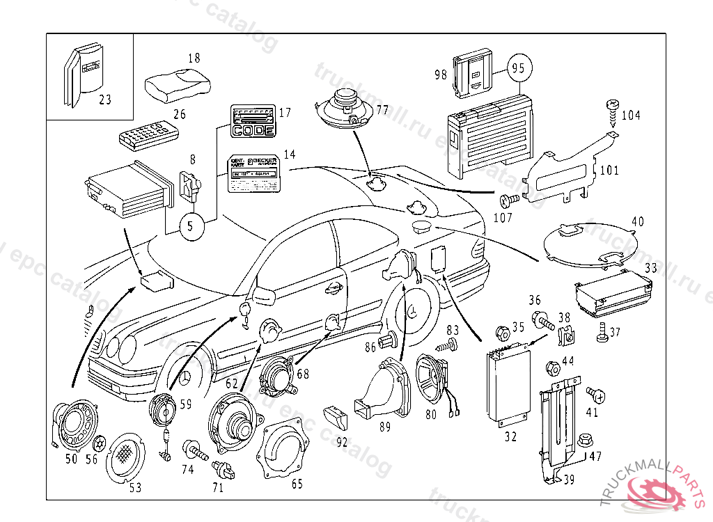 RADIO SET ASSEMBLYMB AUDIO 30, F 046208 EXCEPT CODE 808 ALSO INSTALLED IN VEHICLE TO F 046207 WITH CODE 809 F 129678 T 028295 EXCEPT CODE 800 ALSO INSTALLED IN VEHICLE FROM F 129679, T 028296 WITH CODE 809
