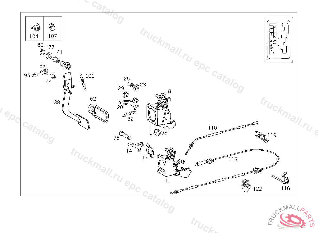 CABLE PARKING INTERLOCK, A 519674 F 619721 EXCEPT CODE 807 ALSO INSTALLED IN VEHICLE TO A 519673, F 619720 WITH CODE 808