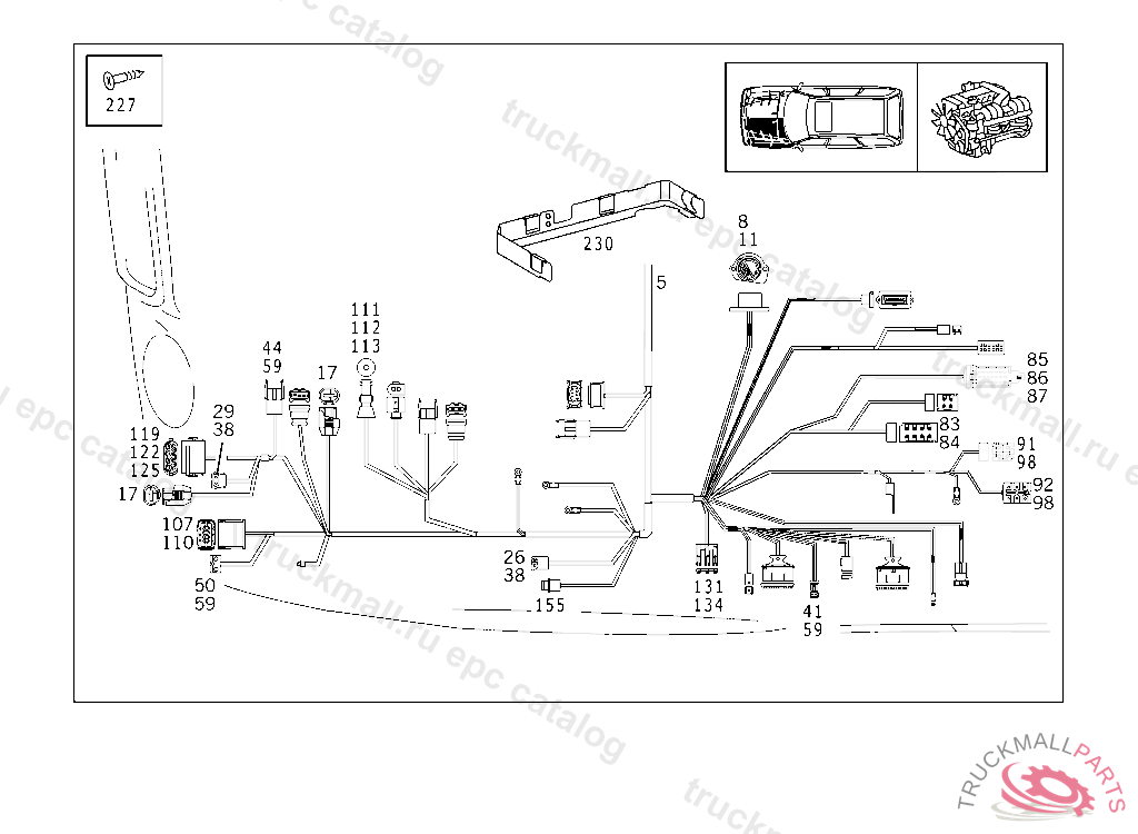 CABLE HARNESS ENGINE CABLE HARNESS,BODY MOUNTED, A 698507 X 012425 EXCEPT CODE 809 ALSO INSTALLED IN VEHICLE FROM A 698508, X 012426 WITH CODE 808