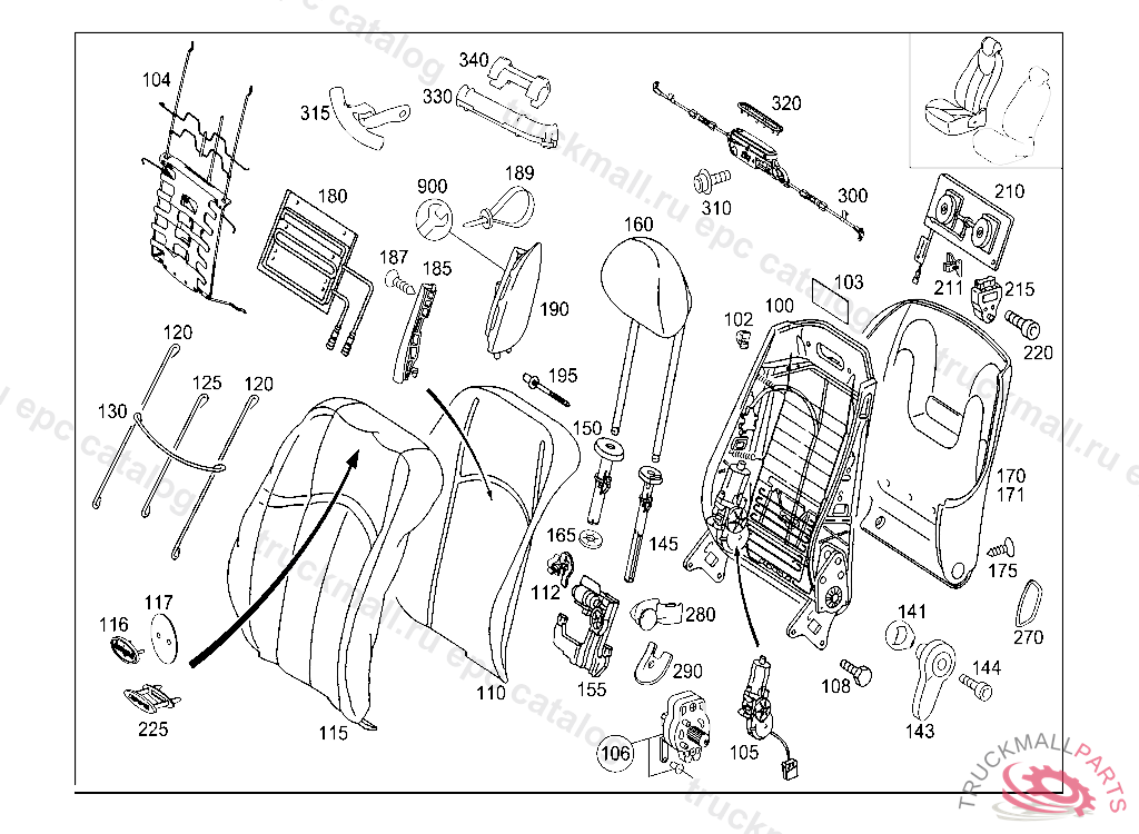 BACKREST FRAME ASSEMBLY RIGHT, WITH MEMORY FOR MULTICONTOUR SEAT, Replaced By: A0009104234, +001A1267820197