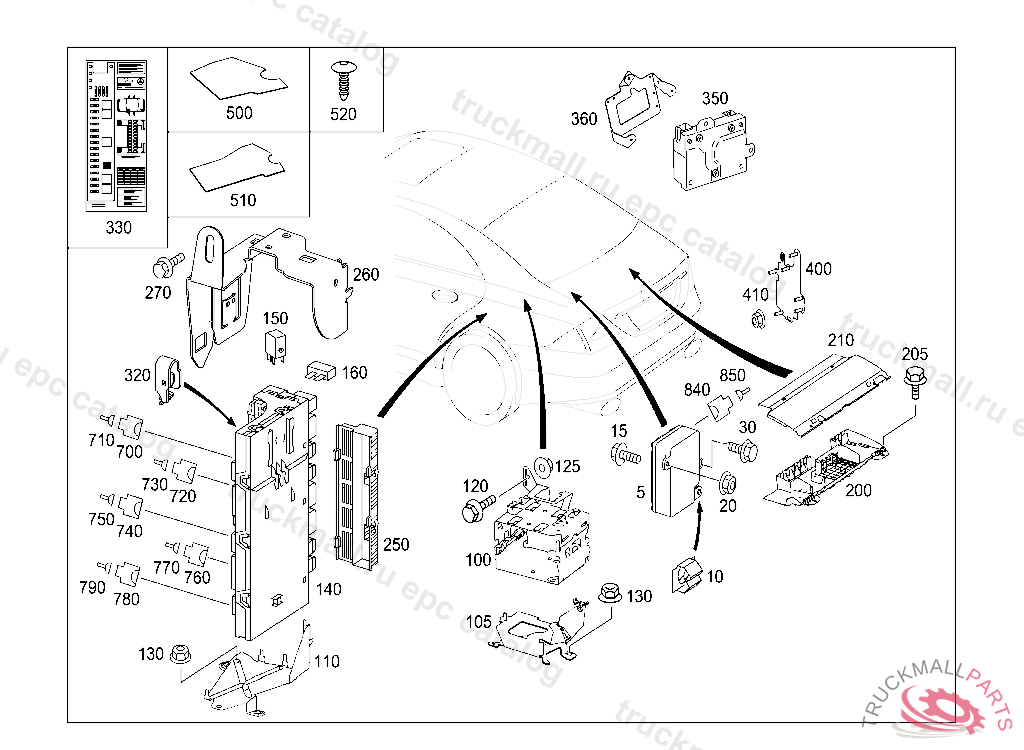 ELECTRICAL BASIC MODULE SIGNAL ACQUISITION AND ACTUATION MODULE WITH REAR FUSE AND RELAY MODULE, A 03833220050630806, Replaced By: A2115458601