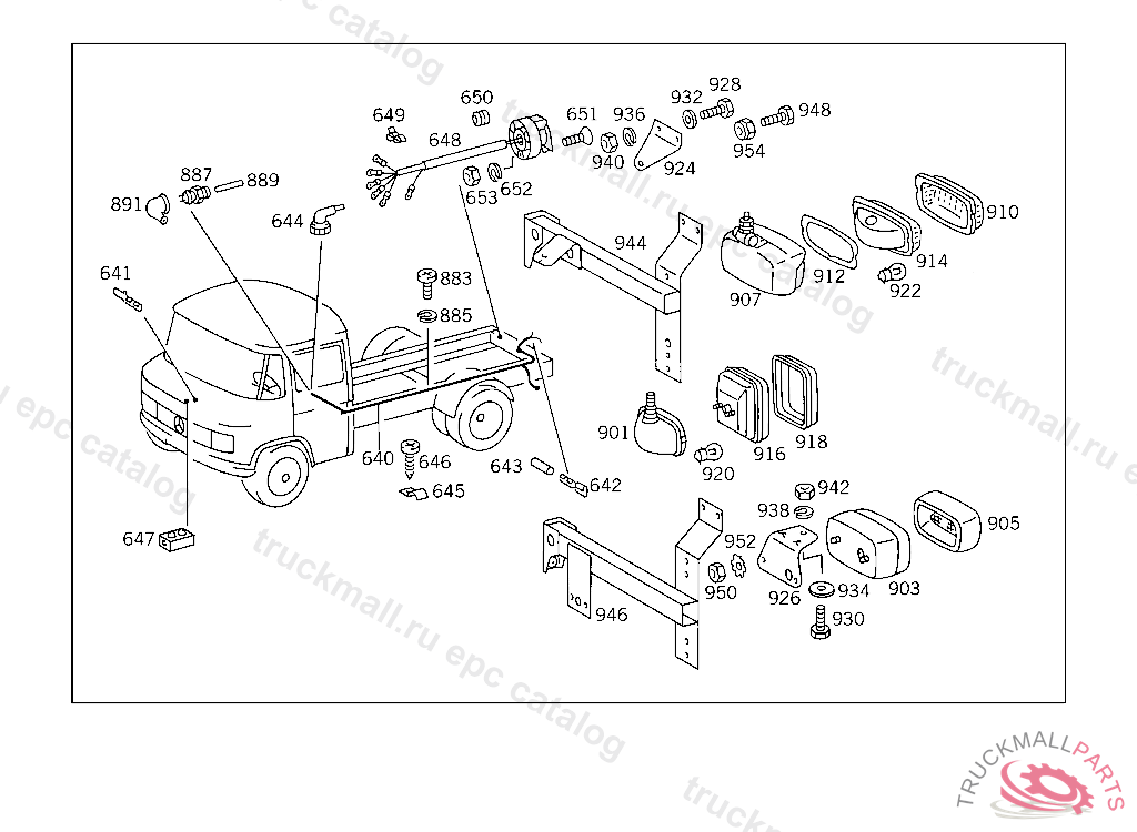 CABLE HARNESS WITH TRAILER PLUG SOCKET, MODELS 050-053 UP TO IDENT NO. 003607