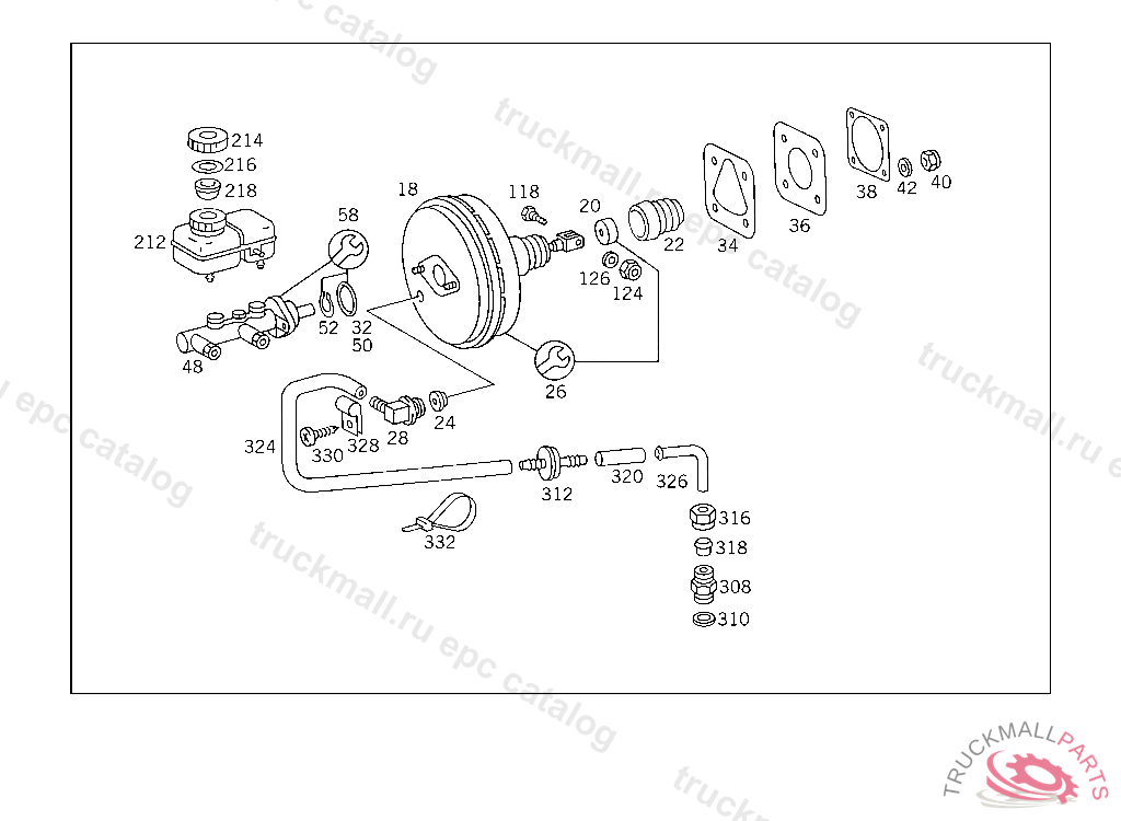BRAKE BOOSTER ASSEMBLY , FROM CHASSIS 018154 ALSO INSTALLED ON 017661,017829 EXCEPT FOR 018155,018156,018159,018308,018310,018315,018317,018318,018327,018350,018355. EXHAUST STOCK OF OLD PARTS NUMBER FIRST UP TO CHASSIS 533350, Replaced By: A0024305630, +001A1262920074, +001N912011008000