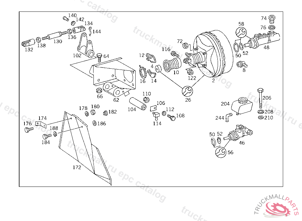 BRAKE BOOSTER ASSEMBLY , FROM CHASSIS 018154 ALSO INSTALLED ON 017661,017829 EXCEPT FOR 018155,018156,018159,018308,018310,018315,018317,018318,018327,018350,018355. EXHAUST STOCK OF OLD PARTS NUMBER FIRST UP TO CHASSIS 533350, Replaced By: A0024305630, +001A1262920074, +001N912011008000