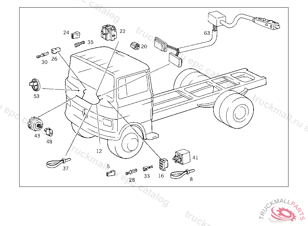 PIN BUSHING HOUSING. PLUG HOUSING FROM CHASSIS/CAB CONNECTION POINT TO TACHOGRAPH