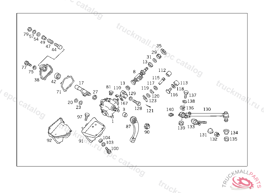 STEERING BOX ASSEMBLY LESS PITMAN ARM, 20/60 UP TO CHASSIS 022038,FROM CHASSIS 022039-252864 SEE SPARE PARTS LIST 760.202,FROM CHASSIS 252865 SEE SPARE PARTS LIST 760.204