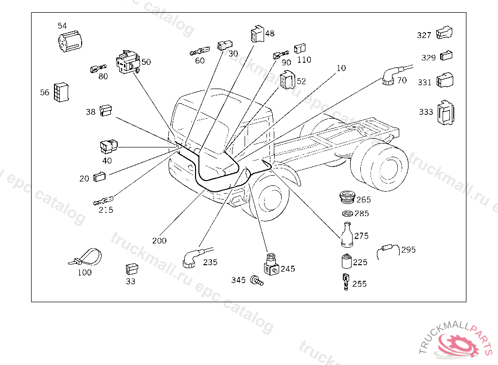 PIN BUSHING HOUSING. PLUG HOUSING FROM CHASSIS/CAB CONNECTION POINT TO TACHOGRAPH