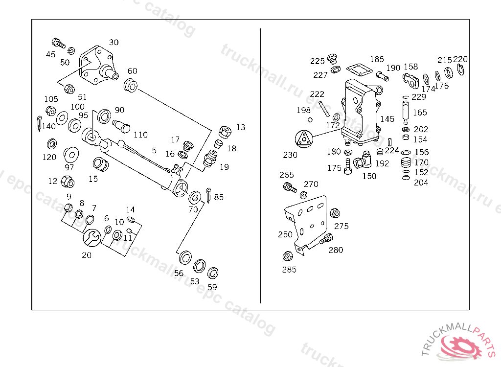 BEARING BRACKET HYDRAULIC CYLINDER, MODEL 415/416/417 FOR USE WITH SHORT CAB MERCEDES BENZ 415 5 014668 416 5 000515 417 4 972023
