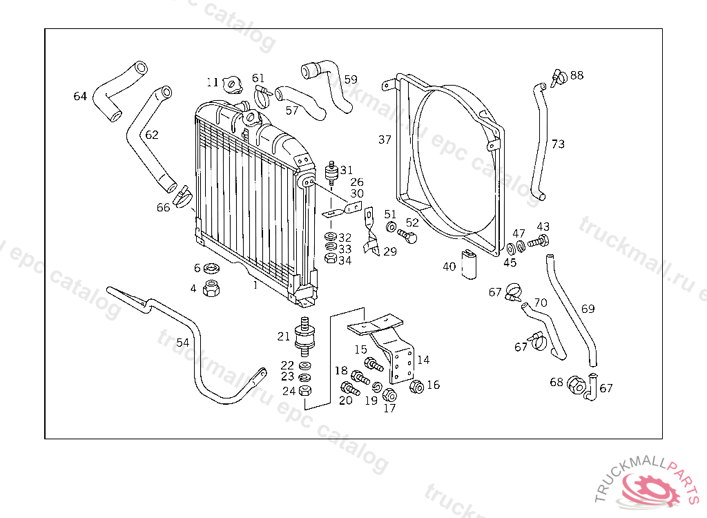RADIATORBEHR, 309.0 UP TO CHASSIS 001150, 309.1 UP TO CHASSIS 015696 EXCEPT FOR:015539,015594,015609