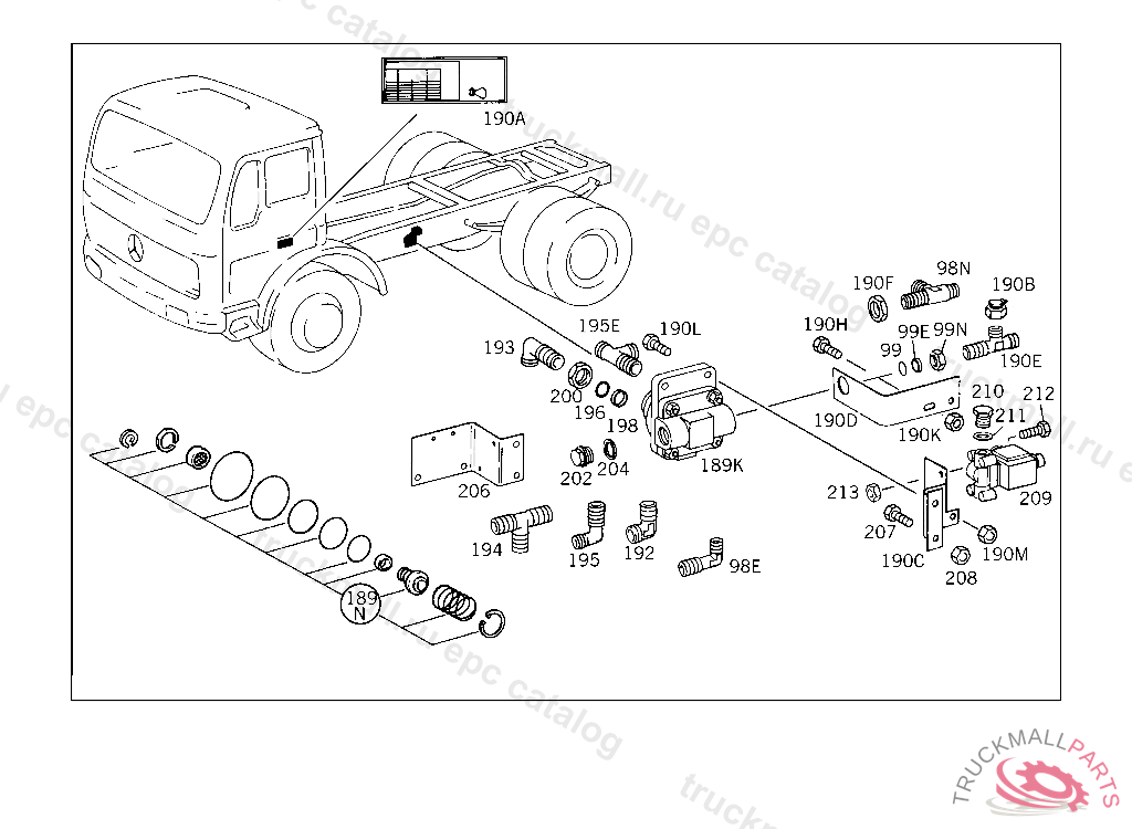 ELBOW FITTING AT AIR COMPRESSOR, 10/20 UP TO CHASSIS 4 191895,50/60 UP TO CHASSIS 4 189545