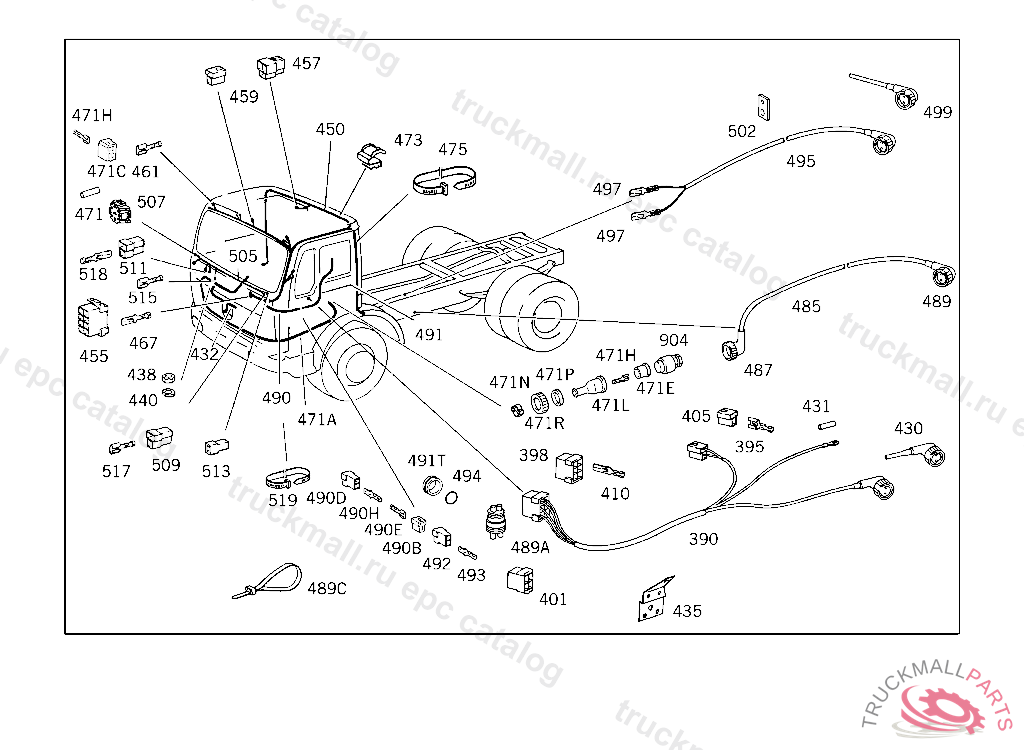 ELECTRIC CABLE CAB ROOF, 415 5 014668 416 5 000515 417 4 972023 FOR USE WITH SHORT MERCEDES-BENZ CAB