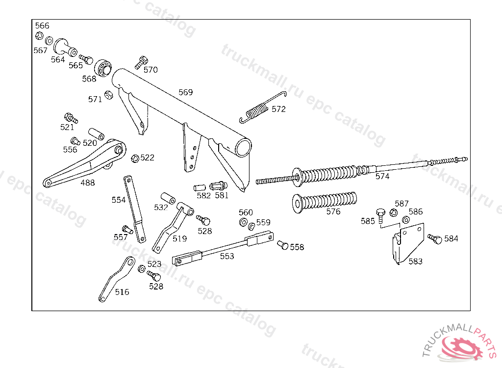 SPRING HAND BRAKE LEVER, UP TO REAR AXLE 154947,FROM REAR AXLE 154948 SEE MICROFICHE 816,743.4