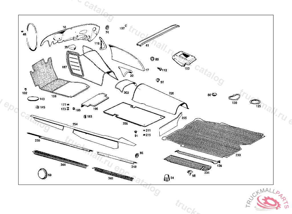 LINING LUGGAGE COMPARTMENT FLOOR, 000,001,004,010 FROM CHASSIS 130558,100,101,104,110 FROM CHASSIS 225684,