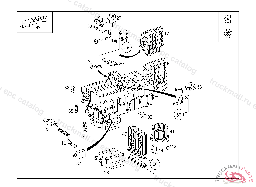 HOUSING AIR CONDITIONER, A 145272 X 707755 EXCEPT CODE 800 ALSO INSTALLED IN VEHICLE FROM A 145273, X 707756 WITH CODE 809