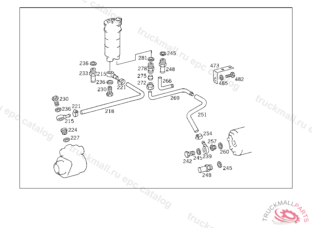 PIPE FROM OIL TANK TO POWER STEERING PUMP AT ENGINE