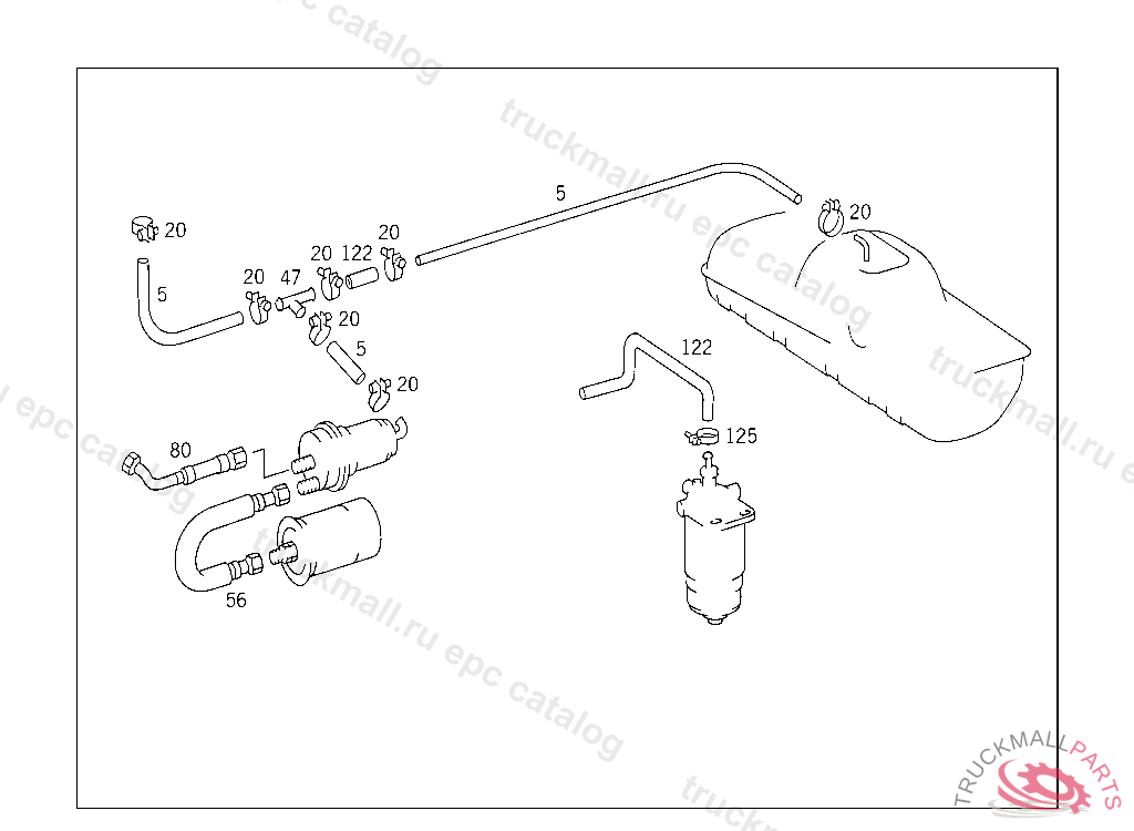 FUEL HOSE FROM FUEL FILTER TO FUEL ACCUMULATOR, 107.024 025530 107.044 053366 116.032,033 089514