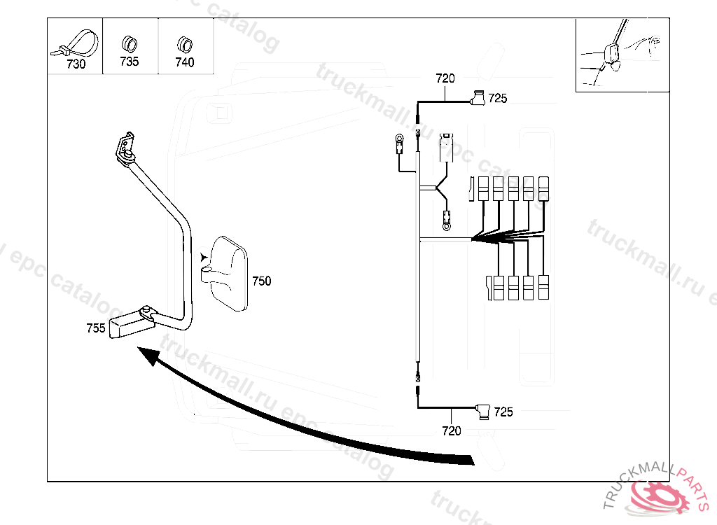 WIRING HARNESS. CABLE HARNESS OUTSIDE REARVIEW MIRROR ELECTRICALLY ADJUSTABLE AND HEATED