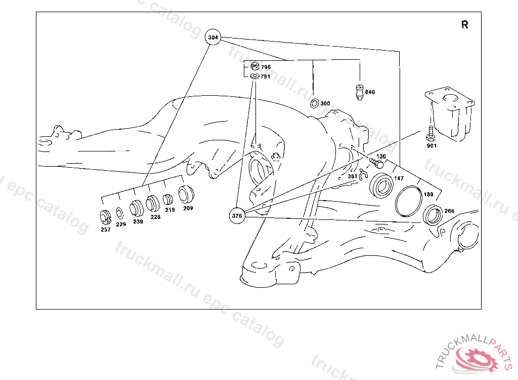 REPAIR KIT REAR AXLE HOUSING WITH DIFFERENTIAL, REAR AXLE HOUSING WITH DIFFERENTIAL,LESS SIDE BEARING CABS 003 103239 007 087551 086 007106 093 008992 102,103 240183 105 231729 183 015395 190 021957 193 002093 200 027295 280 000777 283 003632