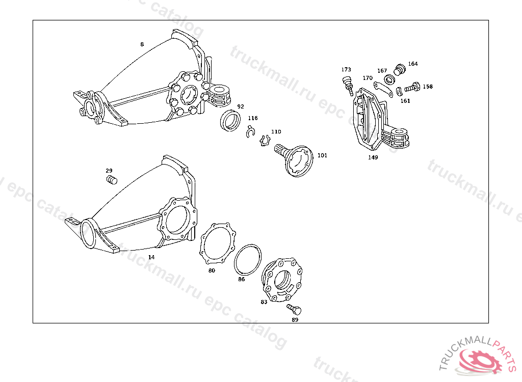 SEAL RING AXLE SHAFT, REAR AXLE HOUSING WITH DIFFERENTIAL AND WITH SIDE BEARING CAPS 003 103238 007 087550 086 007105 093 008991 102,103 240182 105 231728 183 015394 190 021956 193 002092 200 027294 280 000776 283 003631