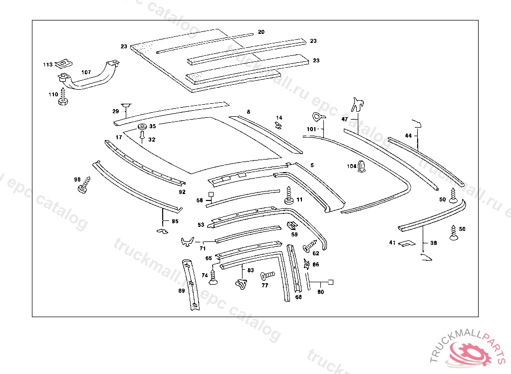 GARNISH MOULDING REAR WINDOW PANE,BOTTOM, 042 008786 045 000319 046 000171 UP TO CHASSIS SEE SA 55830