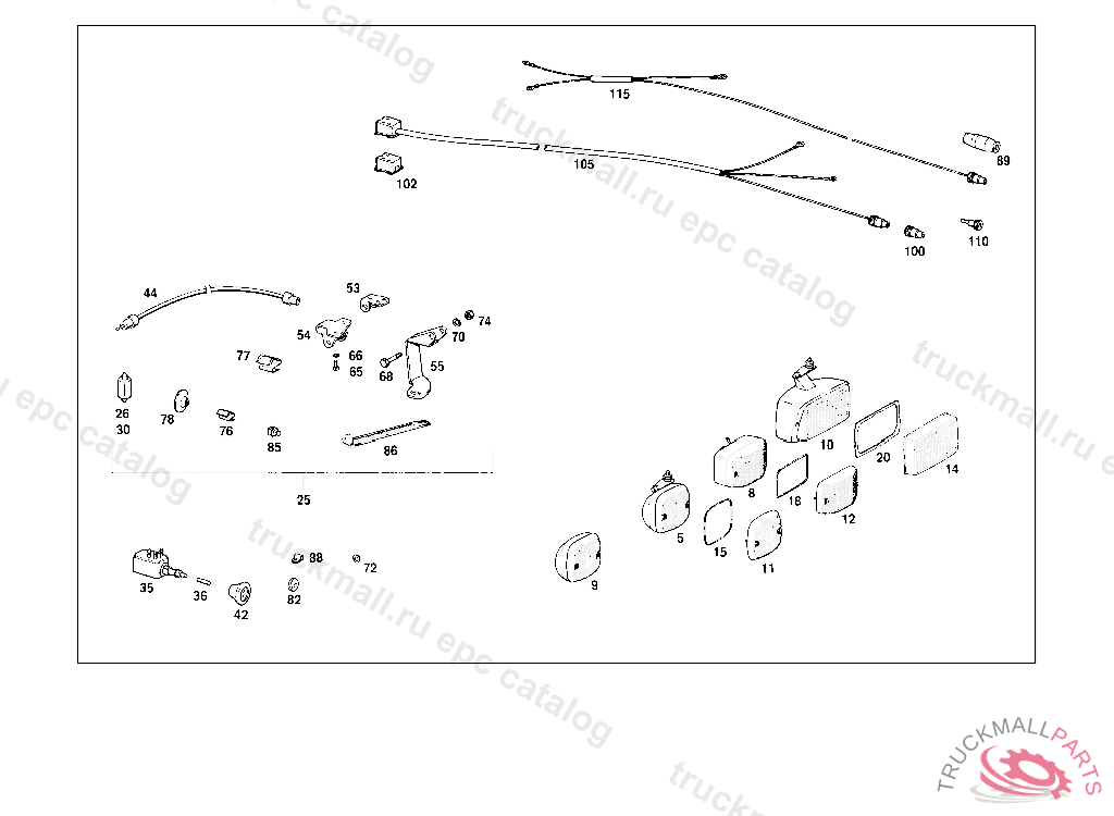 LIGHTING UNIT , UP TO CHASSIS: 114.010 UNTIL PRODUCTION STOP 114.011 104819 114.015 223564 114.060 109779 114.062 104919 UP TO CHASSIS: 115.010 UNTIL PRODUCTION STOP 115.015 228754 115.017 020330 115.110 424857 115.117 042999