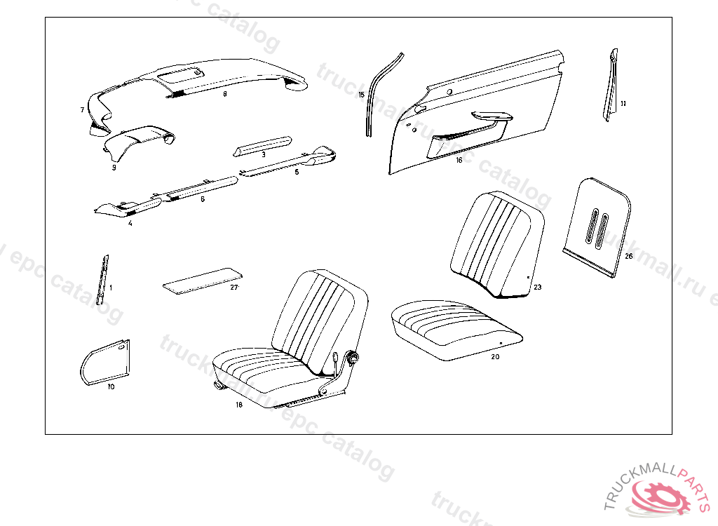 BACKREST , STATE COLOR NUMBER WHEN ORDERING WHEN ORDERING,PLEASE STATE WHETHER FRONT SEAT BACKREST SHOULD BE MADE READY FOR INSTALLATION OF HEADREST FROM CHASSIS: 113.044 013417