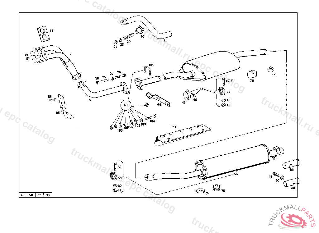EXHAUST PIPE , UP TO CHASSIS: 000,002,010 037564 015 035999, Replaced By: A1154901020, +001A0000941911, +001A0000946382