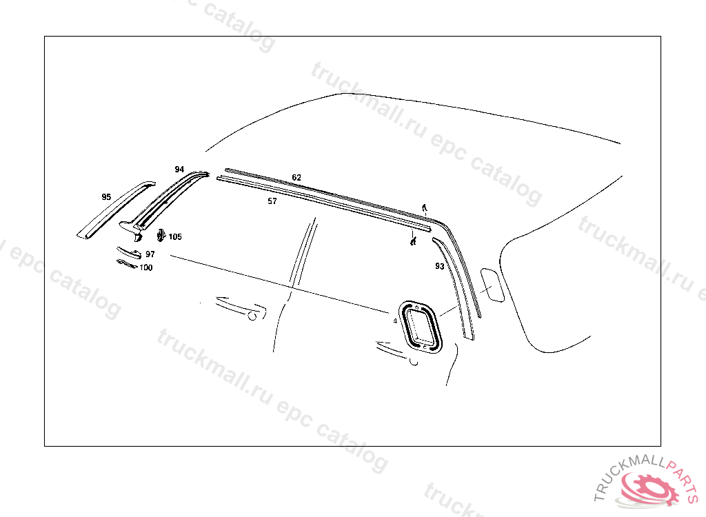 DRIP MOULDING RIGHT, FROM CHASSIS: 015 200001 110 400001 115 200001 005,017,105,107,108,117,119 000001