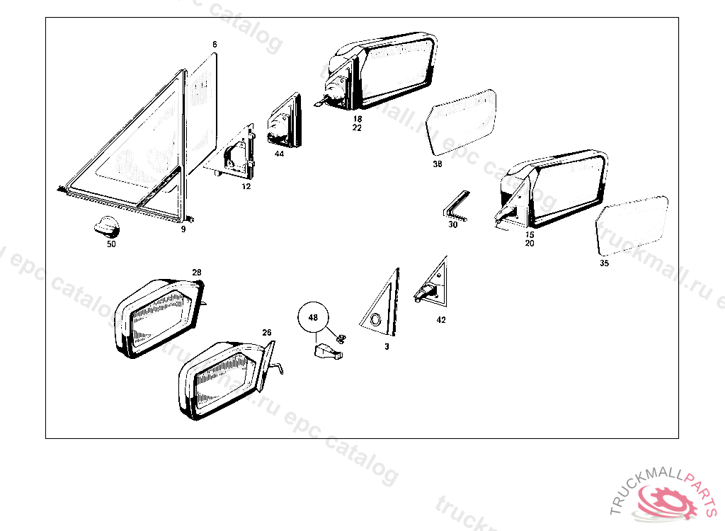 MIRROR GLASS RIGHT, UP TO END OF MODEL YEAR '82
