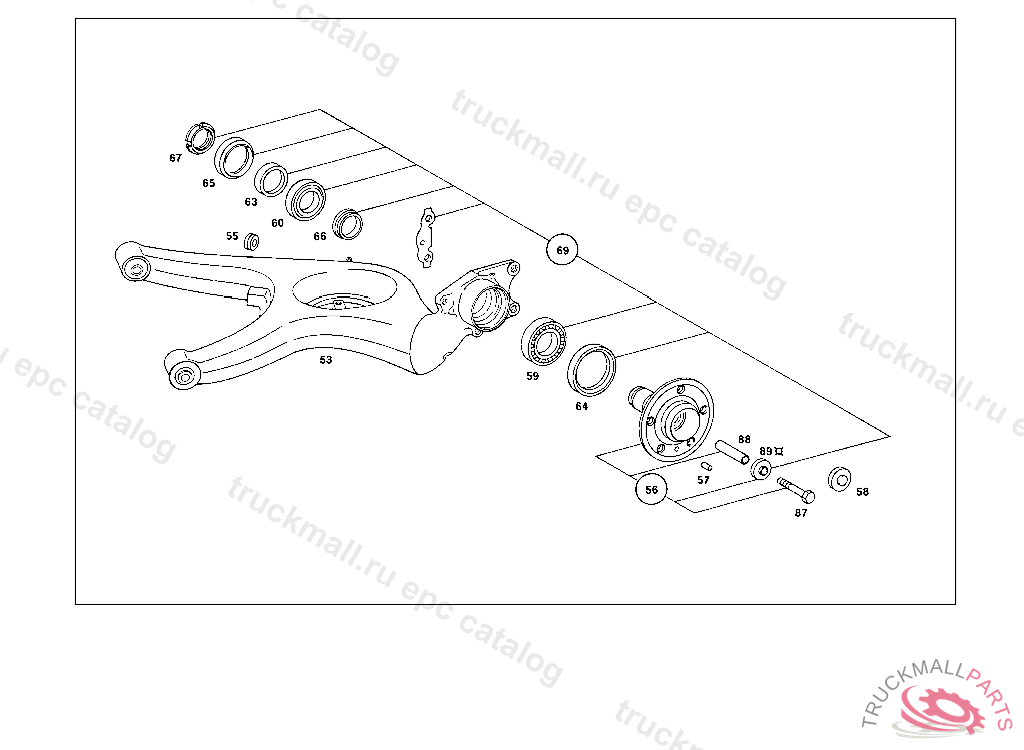 AXLE SHAFT , REAR AXLE HOUSING WITH DIFFERENTIAL AND WITH SIDE BEARING CAPS 003 103238 007 087550 086 007105 093 008991 102,103 240182 105 231728 183 015394 190 021956 193 002092 200 027294 280 000776 283 003631 RIGHT, Replaced By: A1073503310, +001A0149976247