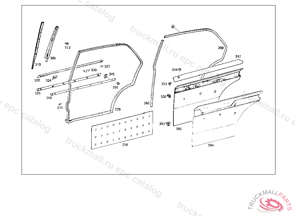 CRANK OPERATED WINDOW LEFT REAR DOOR, RANGE OF DELIVERY INCLUDES: 1 WINDOW REGULATOR RAIL, LEFT 115 730 05 45 UP TO CHASSIS 114.011,060,062 100000 114.015,017 200000 115.015,115 200000 115.110 400000