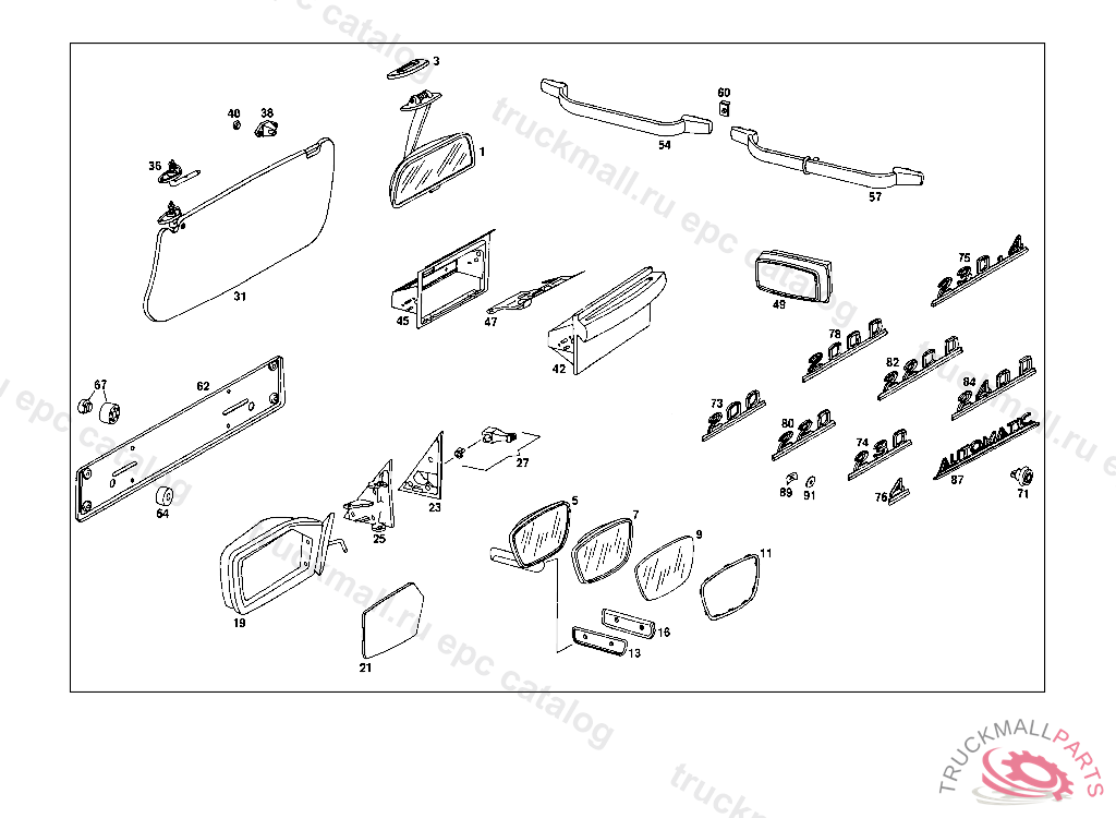 MIRROR GLASS RIGHT, UP TO END OF MODEL YEAR '82
