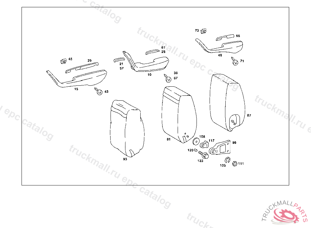 HEADREST COMPLETE,BUT LESS COVER, FROM CHASSIS:SEE FOOTNOTES 044-046