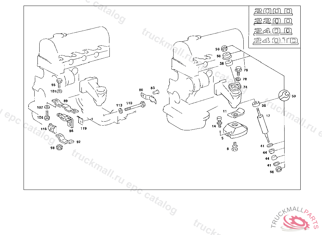 SCREW ENGINE FRONT MOUNTING TO ENGINE SUPPORT, 000 042295 003 019476 102,103 029067 105 038078