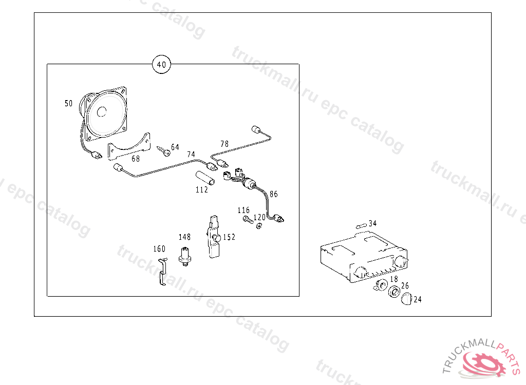 ELECTRIC CABLE LOUDSPEAKER CONNECTION CABLE, FROM CHASSIS 116.020 037452 116.024,025 039538 116.028,029 025862 116.032,033 034710