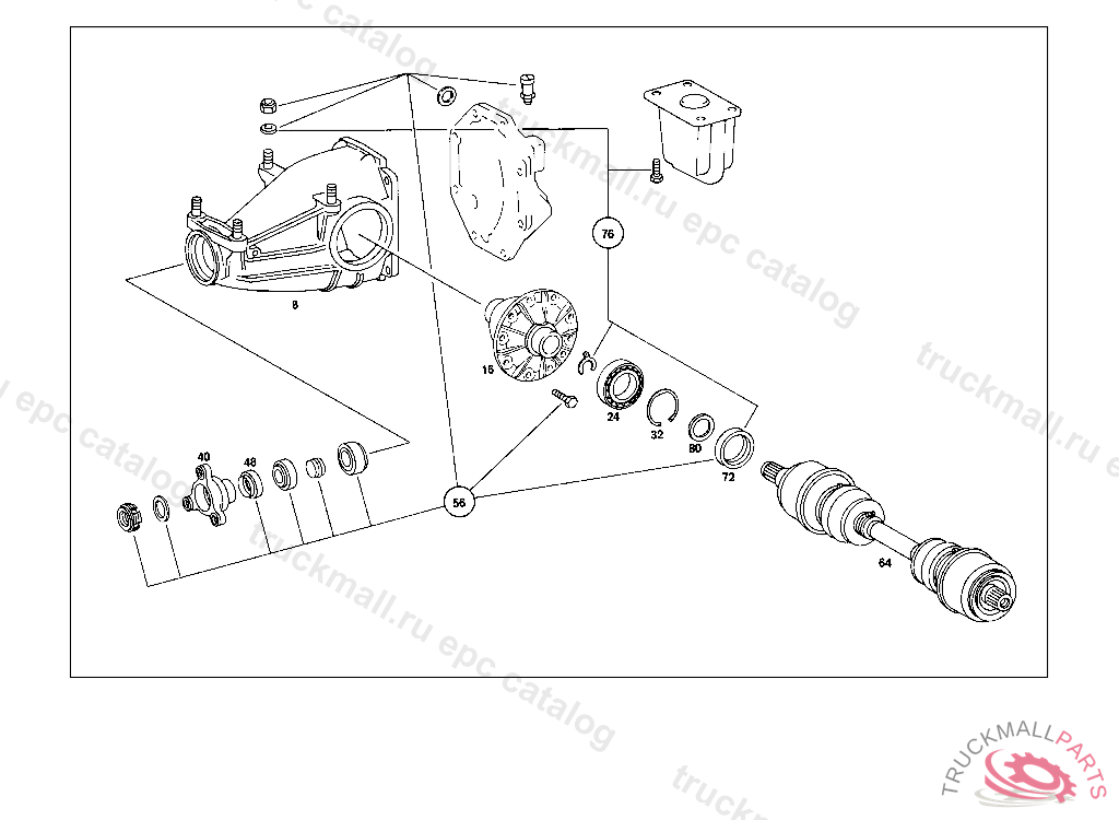 REPAIR KIT REAR AXLE HOUSING WITH DIFFERENTIAL, REAR AXLE HOUSING WITH DIFFERENTIAL,LESS SIDE BEARING CABS 003 103239 007 087551 086 007106 093 008992 102,103 240183 105 231729 183 015395 190 021957 193 002093 200 027295 280 000777 283 003632