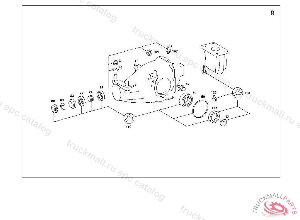 REPAIR KIT REAR AXLE HOUSING WITH DIFFERENTIAL, REAR AXLE HOUSING WITH DIFFERENTIAL,LESS SIDE BEARING CABS 003 103239 007 087551 086 007106 093 008992 102,103 240183 105 231729 183 015395 190 021957 193 002093 200 027295 280 000777 283 003632