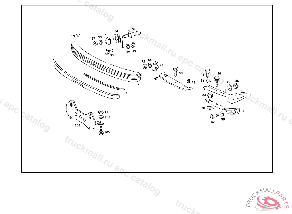 BUMPER JOINT COVER FRONT,BETWEEN BUMPER AND BODY, 003 099459 007 082986 086 006885 093 008450 102,103 219668 105 219920 183 014499 190 021302 193 000281 200 013534 280 000039 283 002732