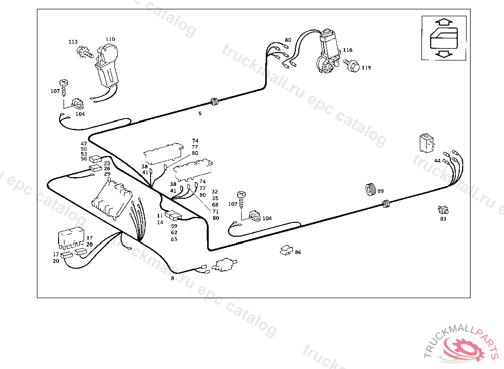 ELECTRIC CABLE FROM SWITCH CLUSTER TO FRONT AND REAR DOOR WINDOW REGULATOR MOTORS, 023 066333 033 030919 123 047598 130 060954