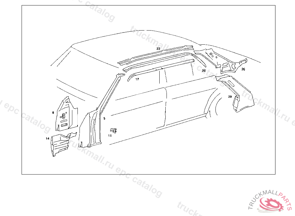 PILLAR FRONT PANEL,RIGHT, 003 114135 007 105747 093 012211 102,103 356994 105 288649 183 023807 190 027447 193 012511 200 122727 280 005850 283 013326