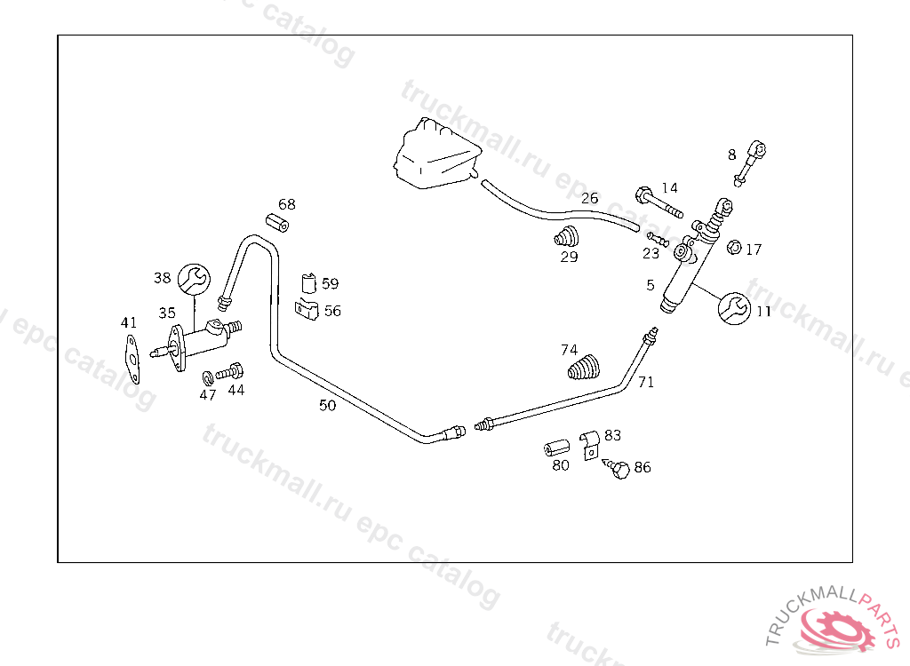 LINE FROM CLUTCH MASTER CYLINDER TO CLUTCH SLAVE CYLINDER, TO BE ADAPTED DURING ASSEMBLY