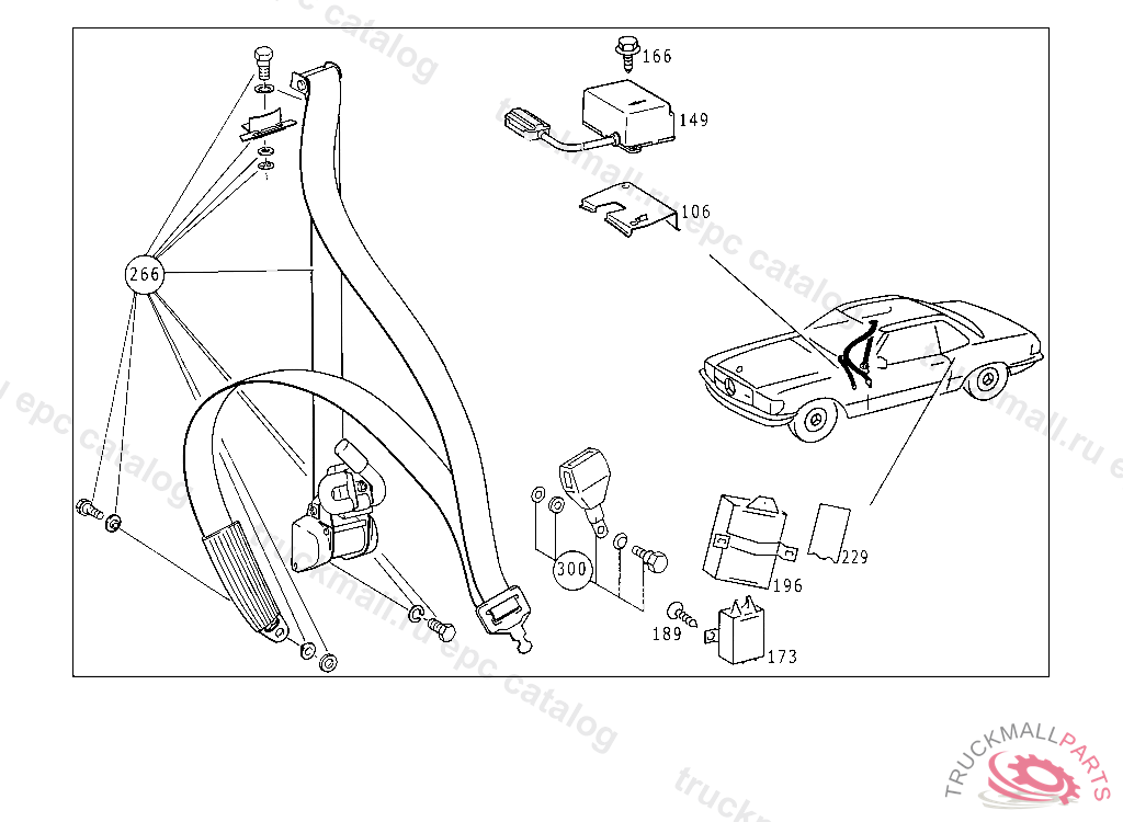 SAFETY BELT WITH BELT LOCKING RETRACTOR, 107 A 000109 126 A 001537