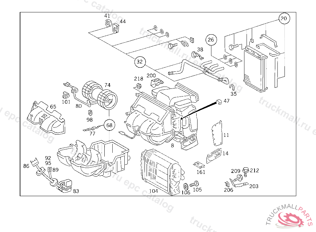 HEATER CASE , FIRST EXHAUST STOCK OF OLD PARTS UP TO IDENT NO. A 732130, Replaced By: A1248304462