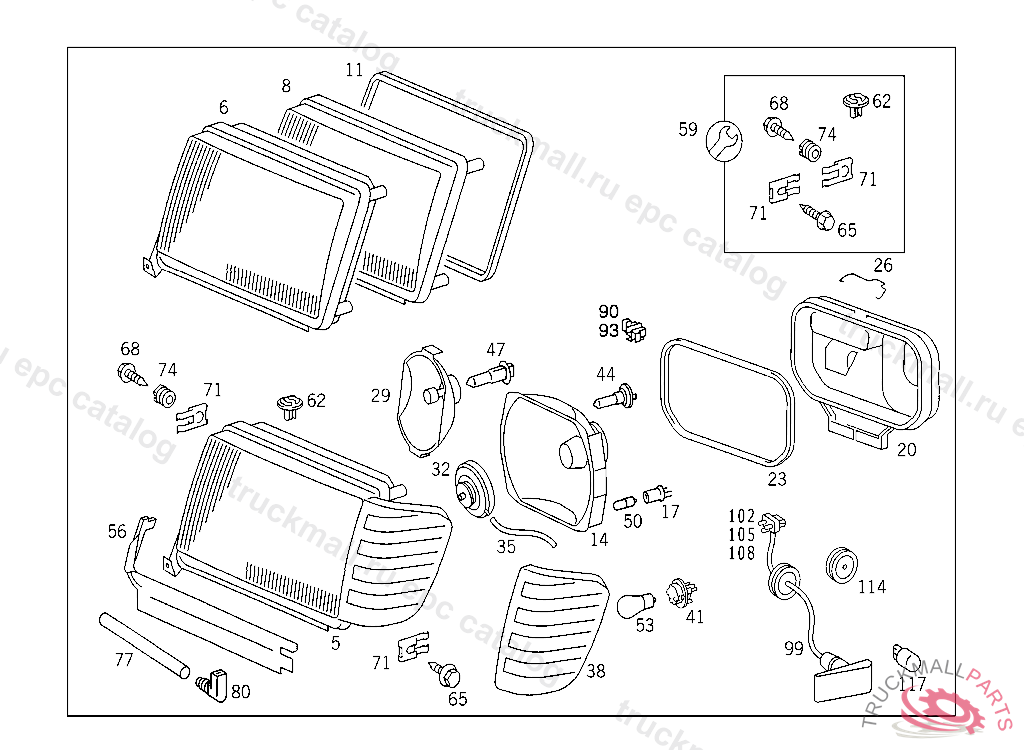 LIGHTING UNIT LEFT, R.H. TRAFFIC, USED W/WHITE BLINKER LAMP BOSCH, C 020765 ALSO INSTALLED ON B 891779 - C 020763 WITH CODE 859