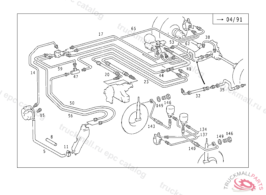 LINE FROM HEIGHT CONTROL VALVE TO RIGHT SPRING-LOADED BRAKE UNIT