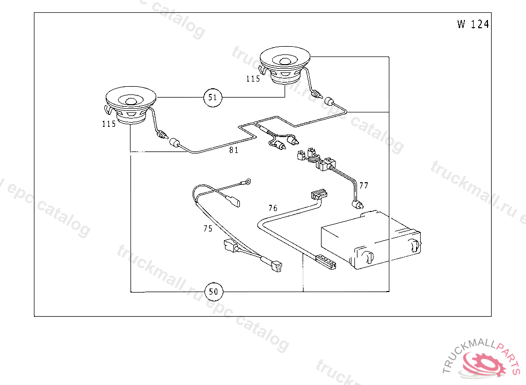 ELECTRIC CABLE LOUDSPEAKER CONNECTION CABLE, FROM CHASSIS 116.020 037452 116.024,025 039538 116.028,029 025862 116.032,033 034710